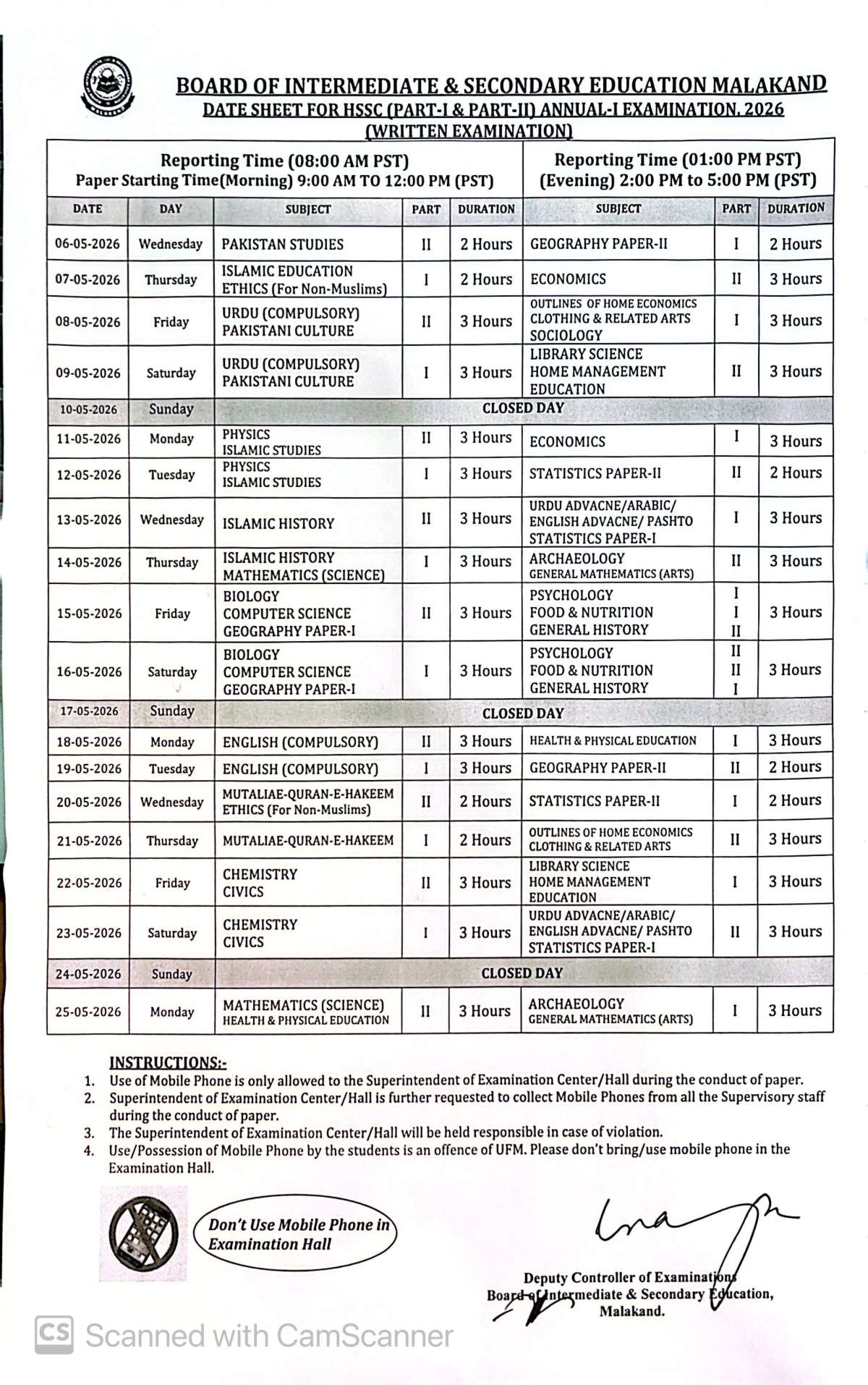 انٹرمیڈیٹ سالانہ اول امتحان 2026 کی ڈیٹ شیٹ جاری کر دی گئی ہے، دیکھنے کیلئے یہاں کلک کریں۔