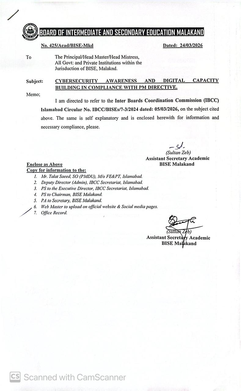 Engagement of Graduate and Postgraduate Candidates as Invigilation Staff for SSC & HSSC Annual-I Exa