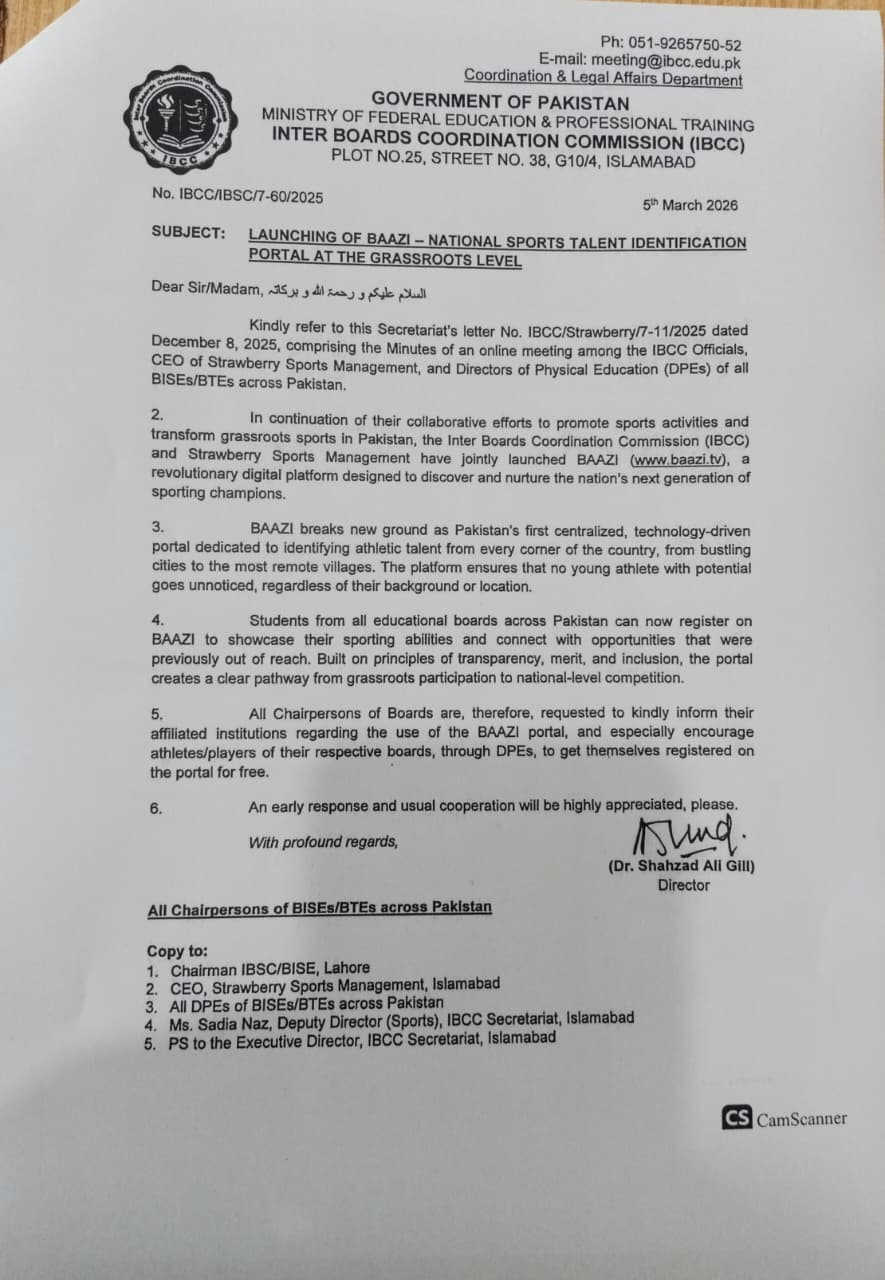 انٹرمیڈیٹ (HSSC) سالانہ اول 2025 کے لیے نیشنل ٹیلنٹ اسکالرشپ کے امیدواروں کی فہرست جاری۔
