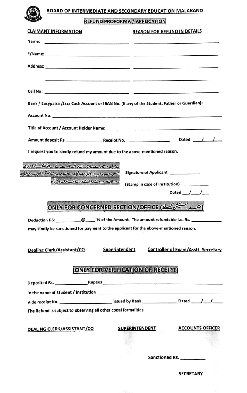 | Important Forms | Affiliation Renewal form for PVT Instituties within the jurisdiction of BISE Malakand | Download |