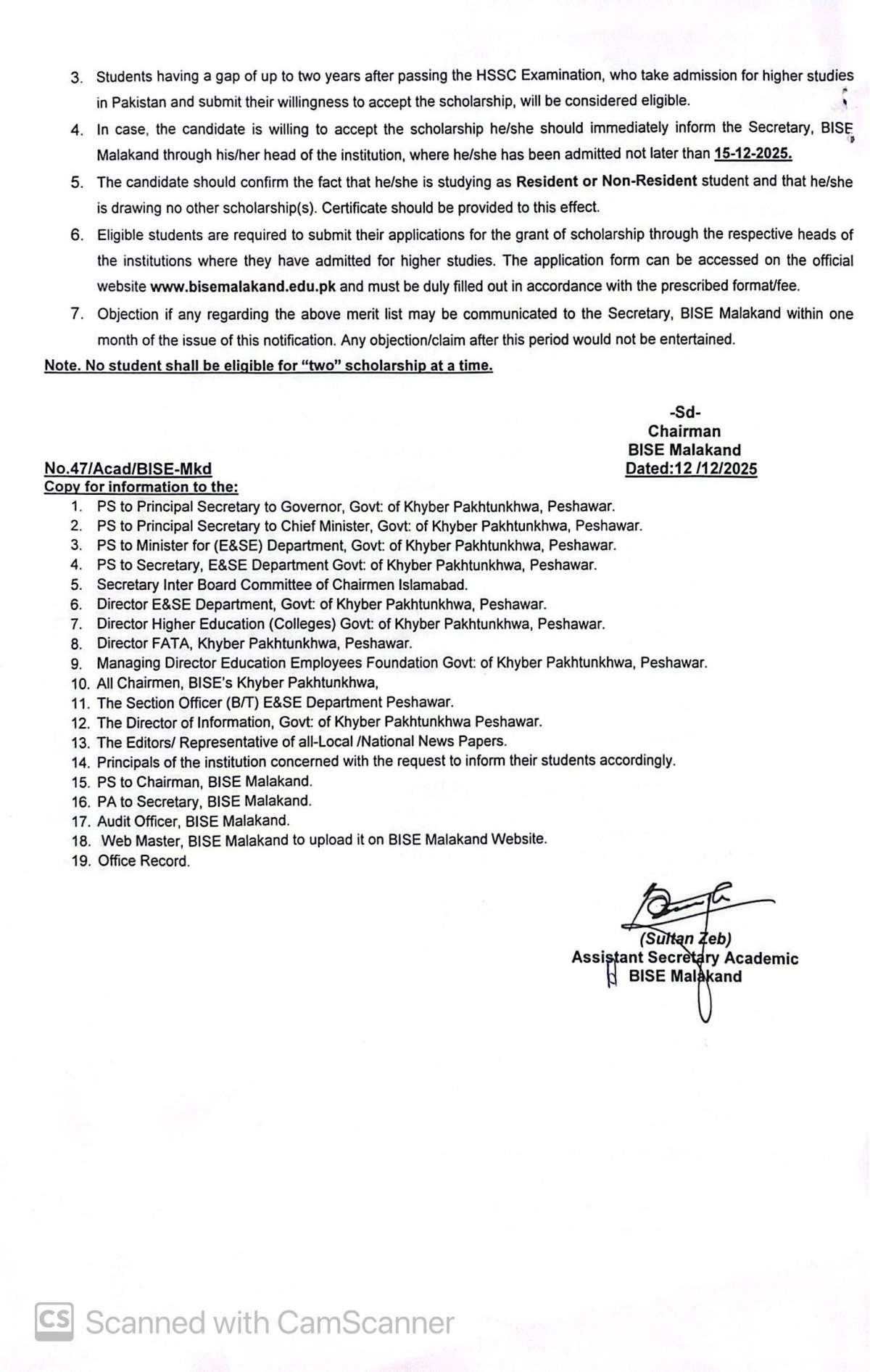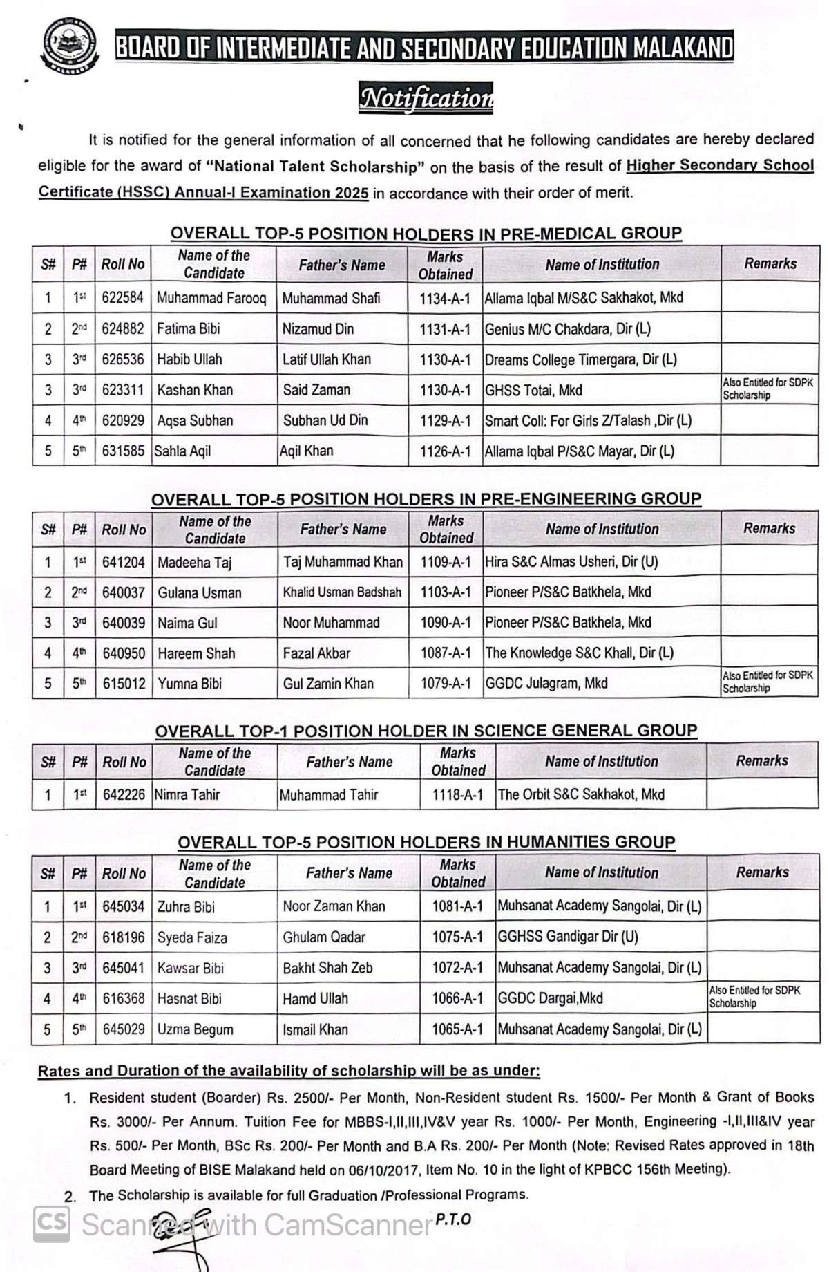 انٹرمیڈیٹ (HSSC) سالانہ اول 2025 کے لیے نیشنل ٹیلنٹ اسکالرشپ کے امیدواروں کی فہرست جاری۔
