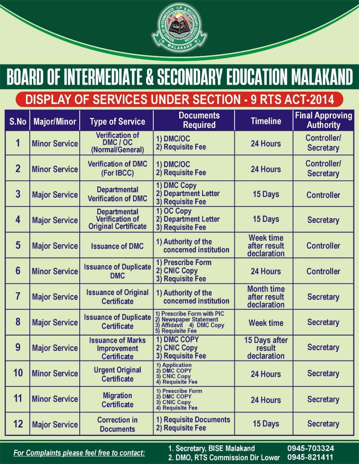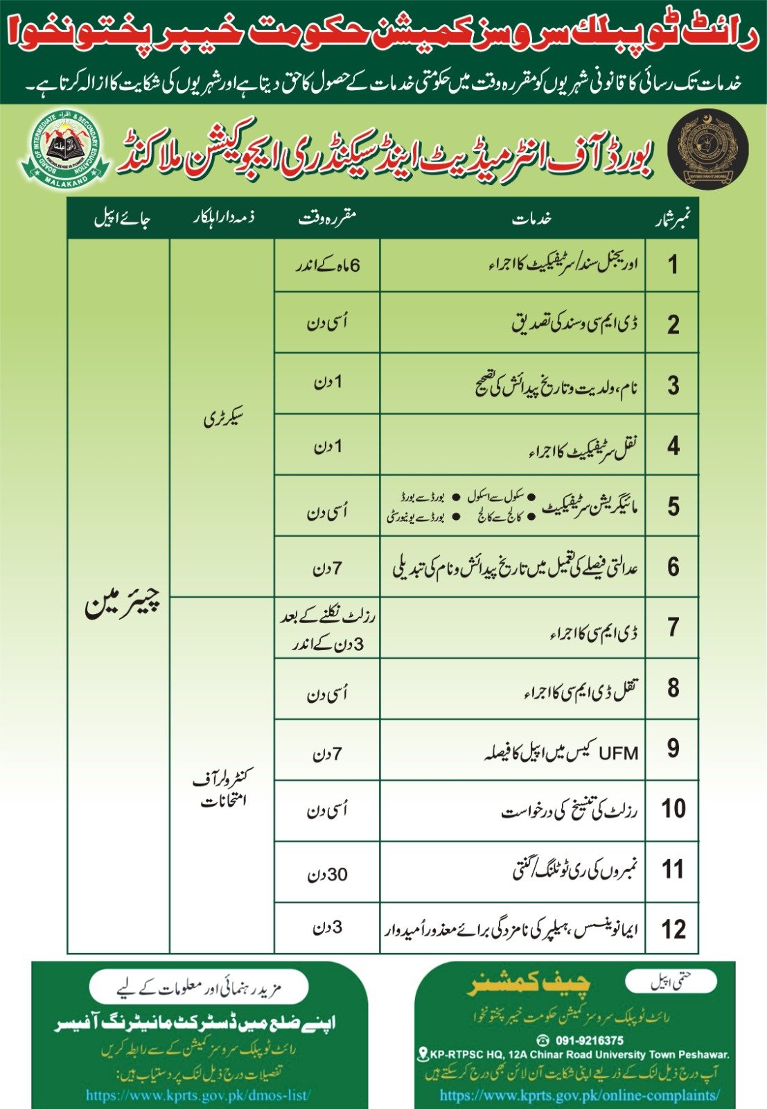 Board of Intermediate & Secondary Education, Malakand