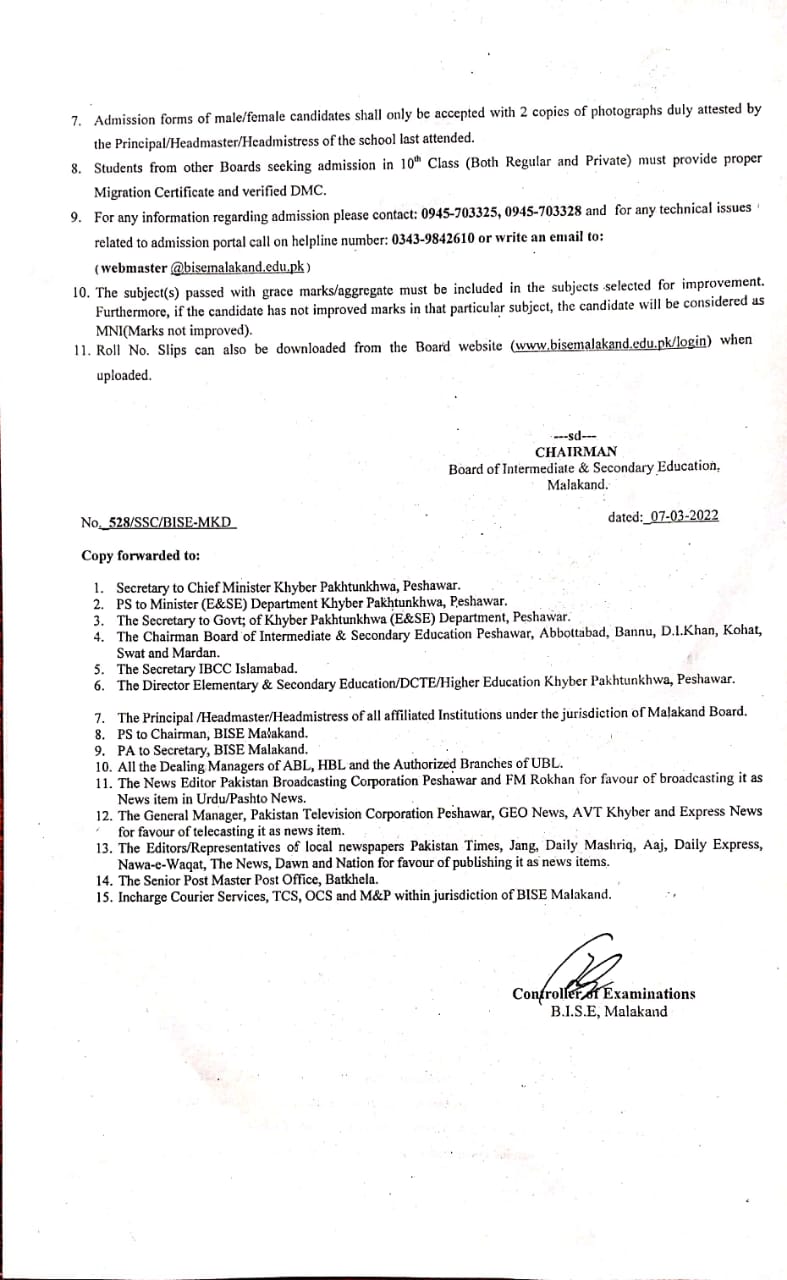 Board of Intermediate & Secondary Education, Malakand
